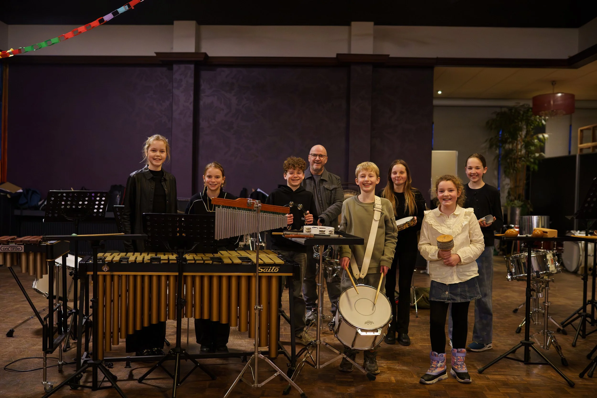De slagwerkgroep staat onder leiding van dirigent Marcel van Nieuwland en repeteert op vrijdagmiddag van 17.30 – 18.15 uur in Het Anker.